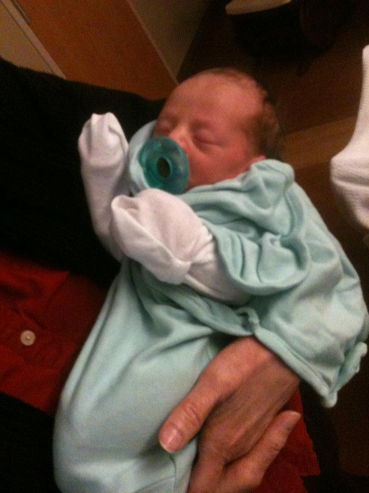 At midnight (4 hours later), the nurse comes in and says “I can see his head!” My husband was asleep and so both of us are groggily trying to get our act together. After that, all I can remember is that the doctor was getting frustrated with me for not pushing correctly and threatening to use the forceps. Of course, she had no idea that I couldn’t feel anything at all, and they ended up doing an episiotomy. To this day, I wonder if I had not had the epidural, would I have had an episiotomy and all the trouble that came along with that? In the end, (about 3:50am) our beautiful boy was born. He was small but boy did he have some lungs!